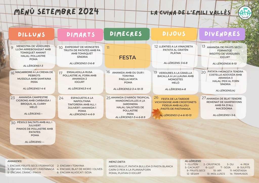 Menú Setembre Setembre 3, 2024aquest mescomunicacioev Començem en pocs dies!! Us deixem el menú d’aquest mes de setembre!!! Relacionats