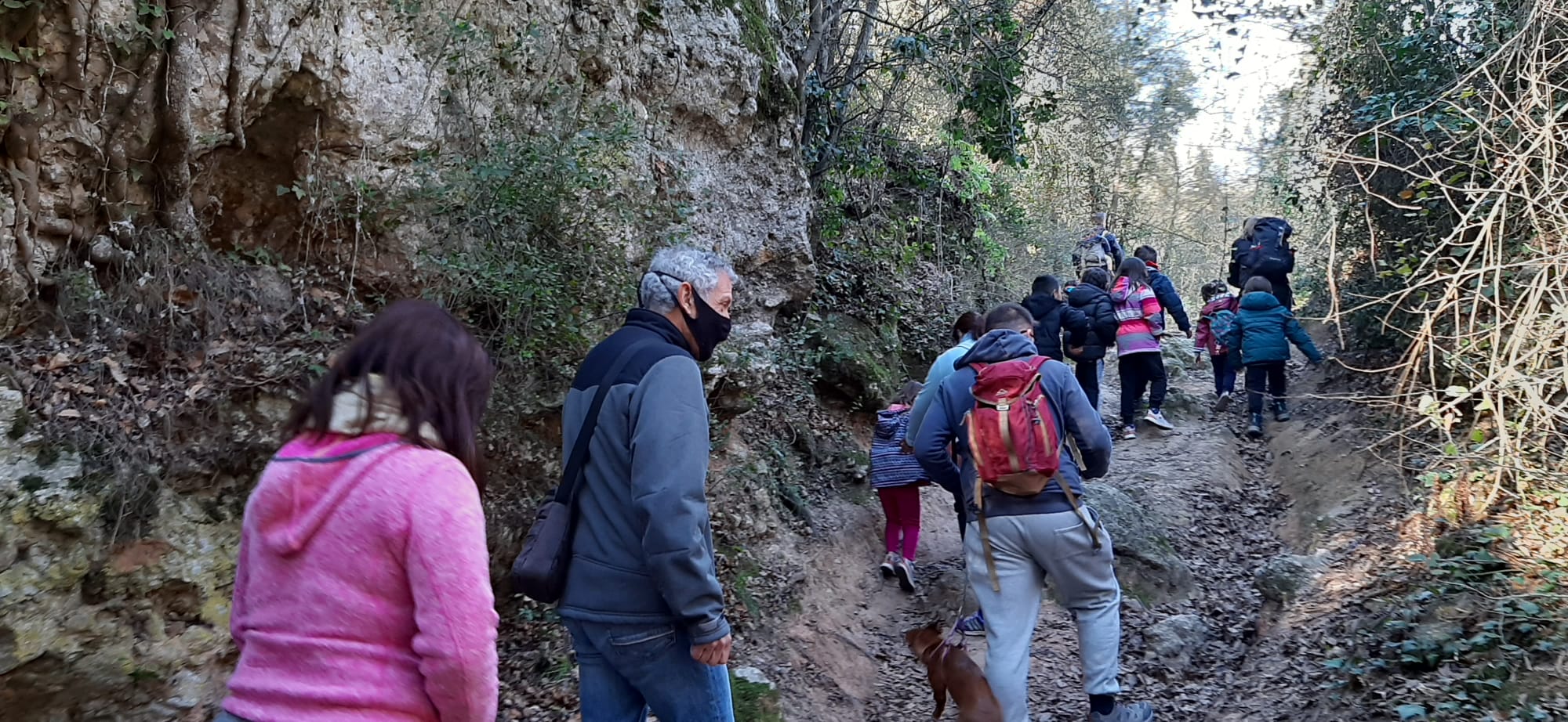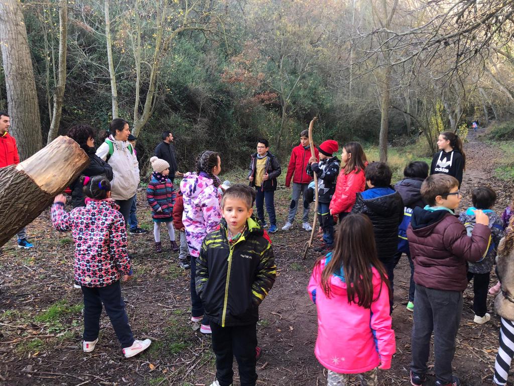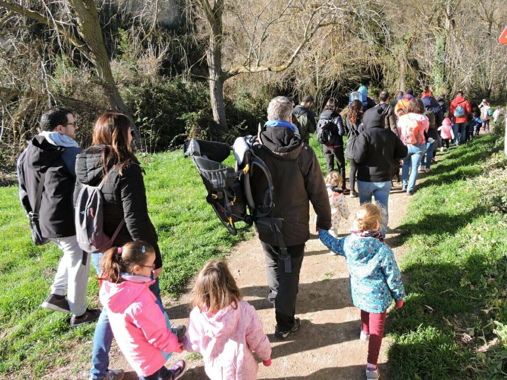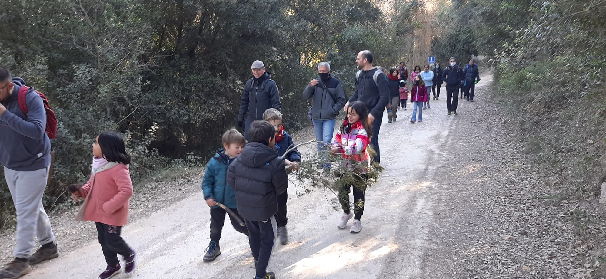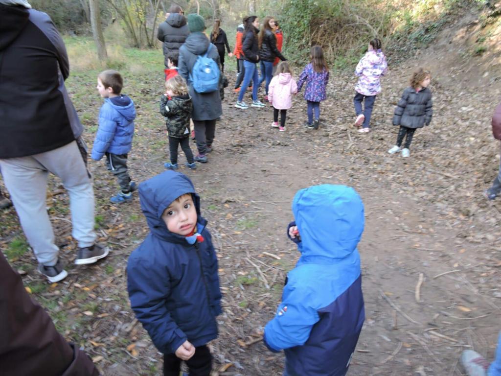Gairebé una quarantena de nens i nenes, acompanyats dels seus respectius pares i altres familiars, s’aplegaren a la porta de l’escola per sortir en direcció al bosc de Montbui. Hi ha una dada que és significativa: cada any el nombre d’assistents va disminuint, per una raó lògica, i és que l’escola està quedant reduïda a gairebé només una línia escolar, i això es nota moltíssim, sobretot en l’etapa infantil.