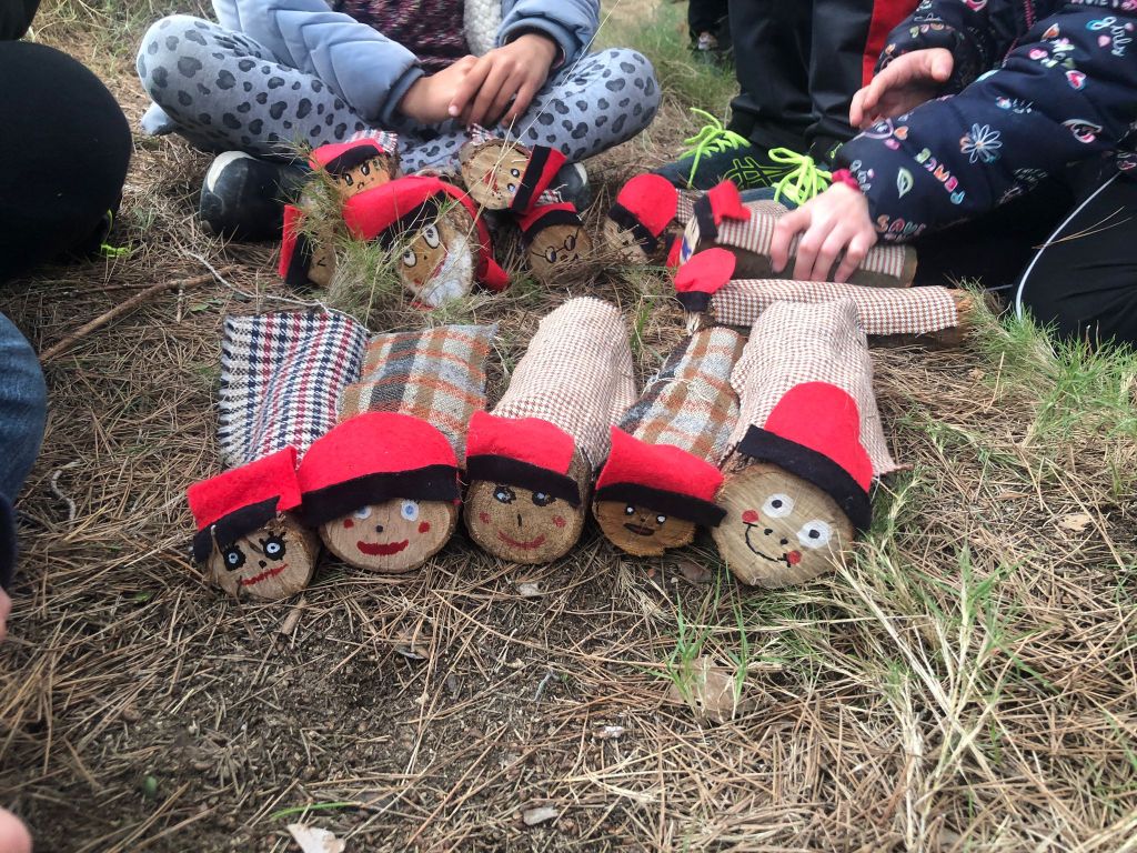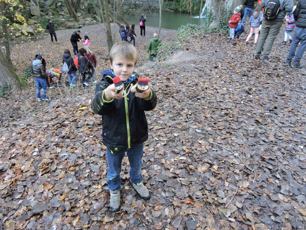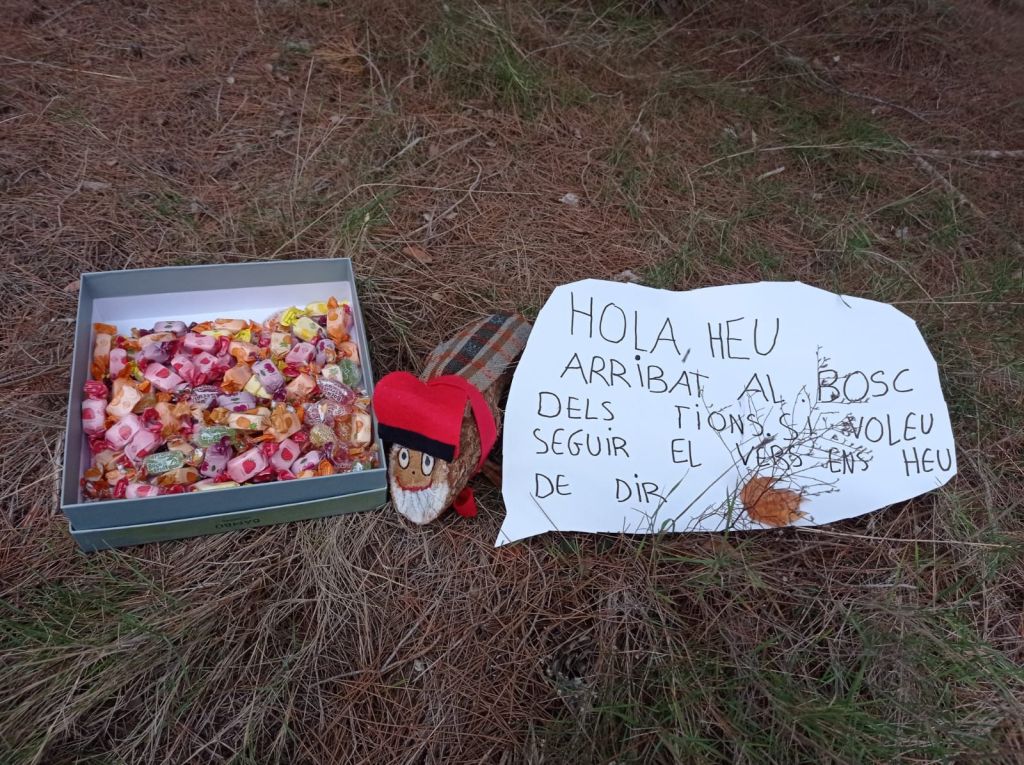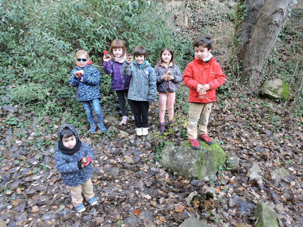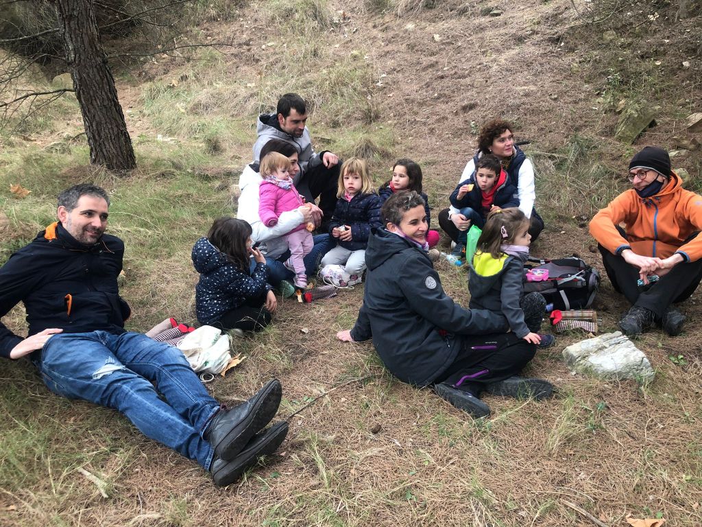 Per una pista molt accessible i després de remuntar per un corriol enmig del bosc, les diferents «pistes» i tresors que, ves per on, la màgia d’aquesta sortida s’havia encarregat de deixar, ens conduïren a una zona més clara del bosc on començava ja a fer olor de tions. I tal dit, tal fet. Els més petits van haver de ser defensats de l’escomesa dels més grans en una mena de cursa per «caçar» tions.