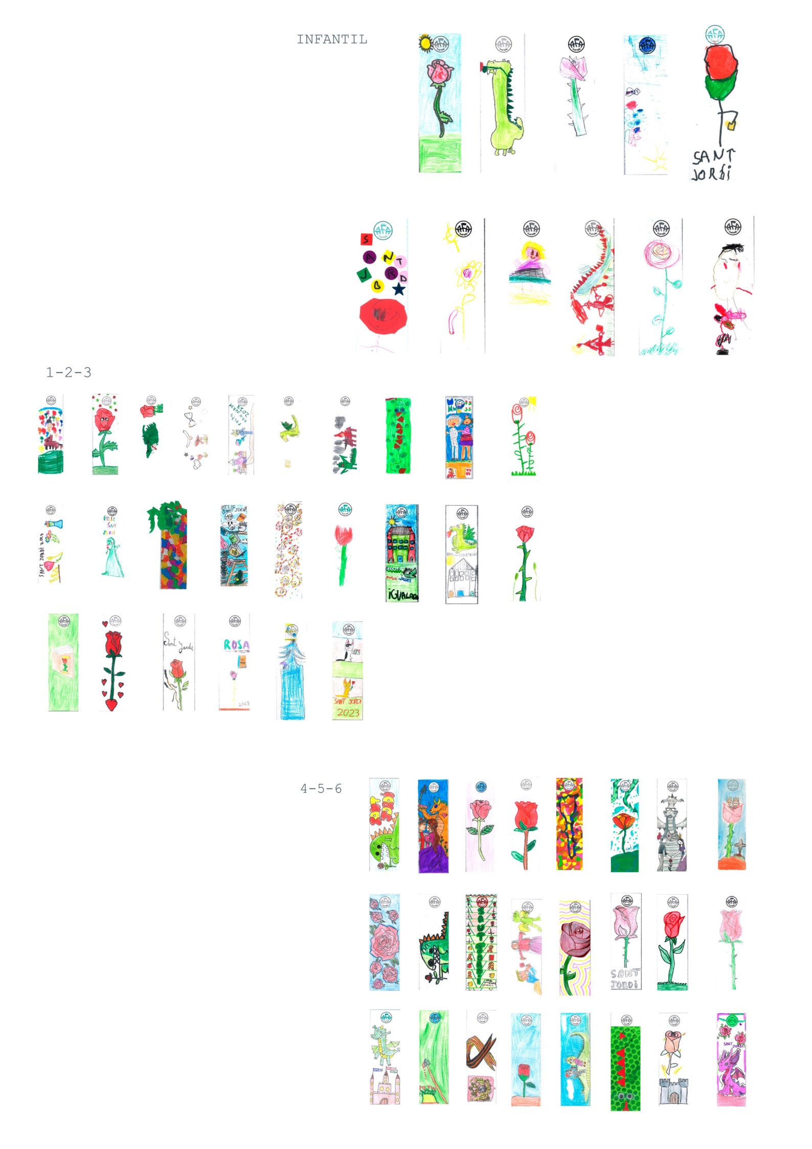 Des de l’Afa hem preparat diverses activitats per a St.Jordi. Com a novetat en aquesta ocasió, hem realitzat un concurs de punts de llibre. Agraïr a tots els nens i nenes la seva col·laboració i aportació. Hem rebut punts genials i molt bonics, difícil decidir-ne un de sol. Les votacions les faran els mateixos alumnes. Sort a tothom!!! Aquí us deixem la recopilació d’imatges.