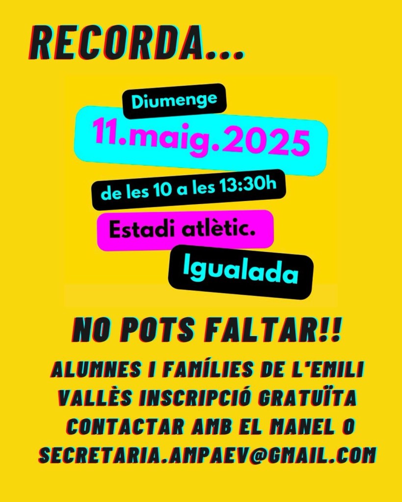 Ens veiem el diumenge 18 de maig.