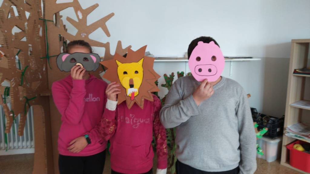 Aprofitant l’arribada de Carnestoltes, els nens i nenes de cicle superior hem elaborat unes màscares per fer un teatre en anglès: “si us plau, passa’m el pegament”, “té les tisores”, “quin animal estas fent?”, “m’agrada com t’ha quedat”….
