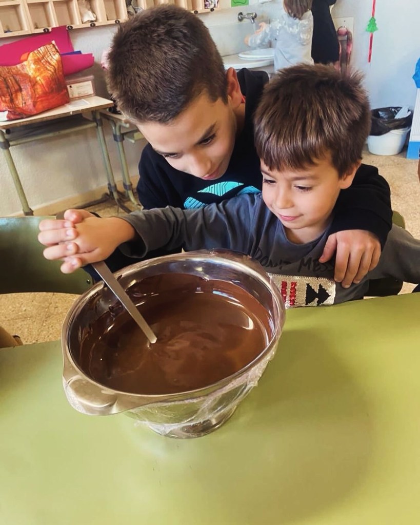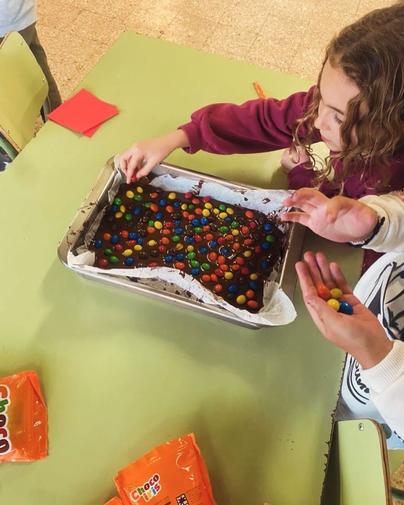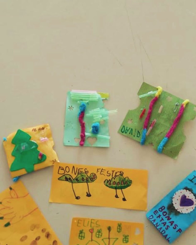 Fent un bon grapat de trossets de turronets!!🤤🍫🎄 amb les seves postals dye de Nadal🎄