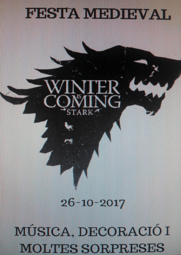 El proper dijous 26 d’octubre celebrarem una festa medieval al nostre menjador.