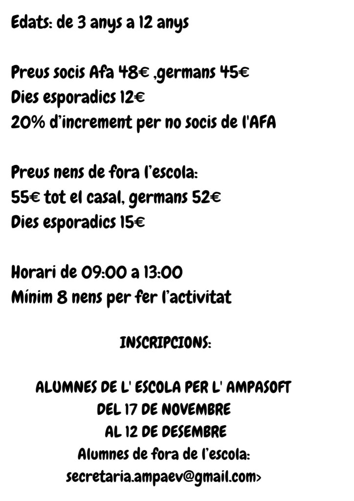 Inscripcions del 25 novembre al 13 desembre!!