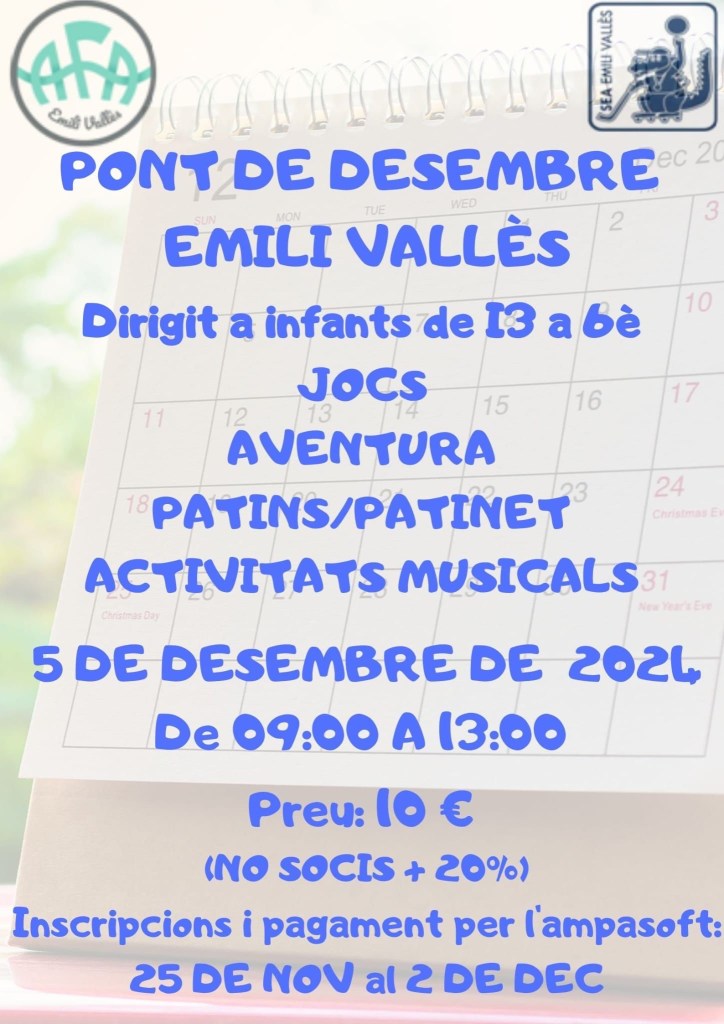 Inscripcions del 25 novembre al 13 desembre!!