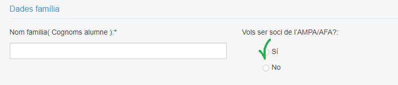 Per fer-vos socis de l’AFA, caldrà que marqueu la casella corresponent quan us creeu el vostre usuari a AMPASOFT (un per família):